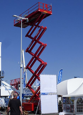 4、Holland lift-27s is hybrid power scissor working platform.(The highest scissor platform in exhibition)