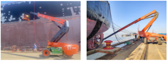 As an important application field of Dingli’s equipment, large shipyards have always been of particular concern to Dingli. Since the implementation of the electrification strategy, in addition to actively promoting the entry of electric booms and large electric scissors into shipbuilding and repair enterprises, Dingli has been focusing on the research and development of high-end ship engineering robots and mechanical equipment to facilitate the mechanization, intelligence and greening process of the shipbuilding and repair industry.